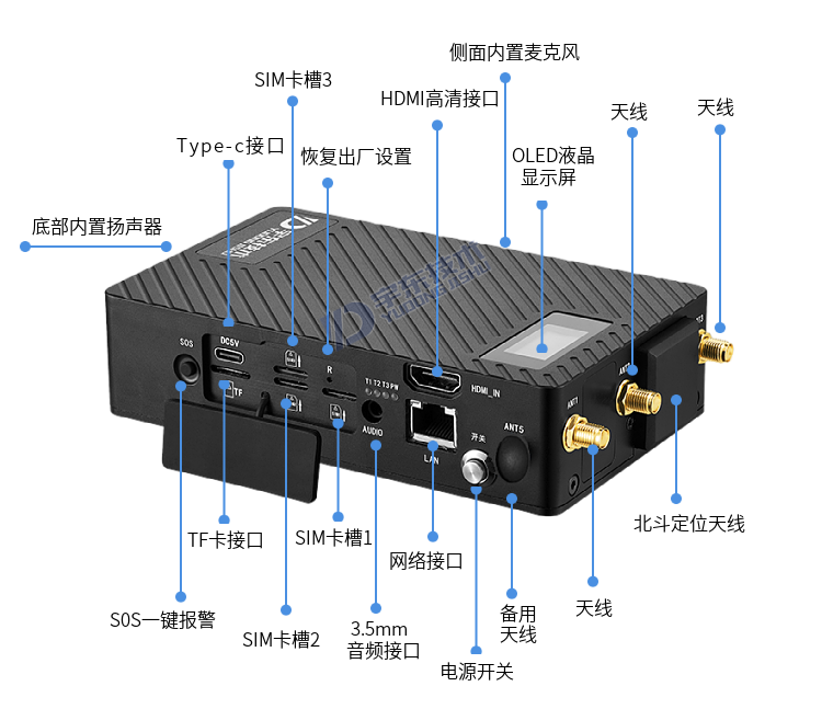 5G單兵無線圖傳 應(yīng)急通信裝備指揮調(diào)度 具備不少于兩個SIM卡槽,同時支持不少于兩個不同運營商網(wǎng)絡(luò)