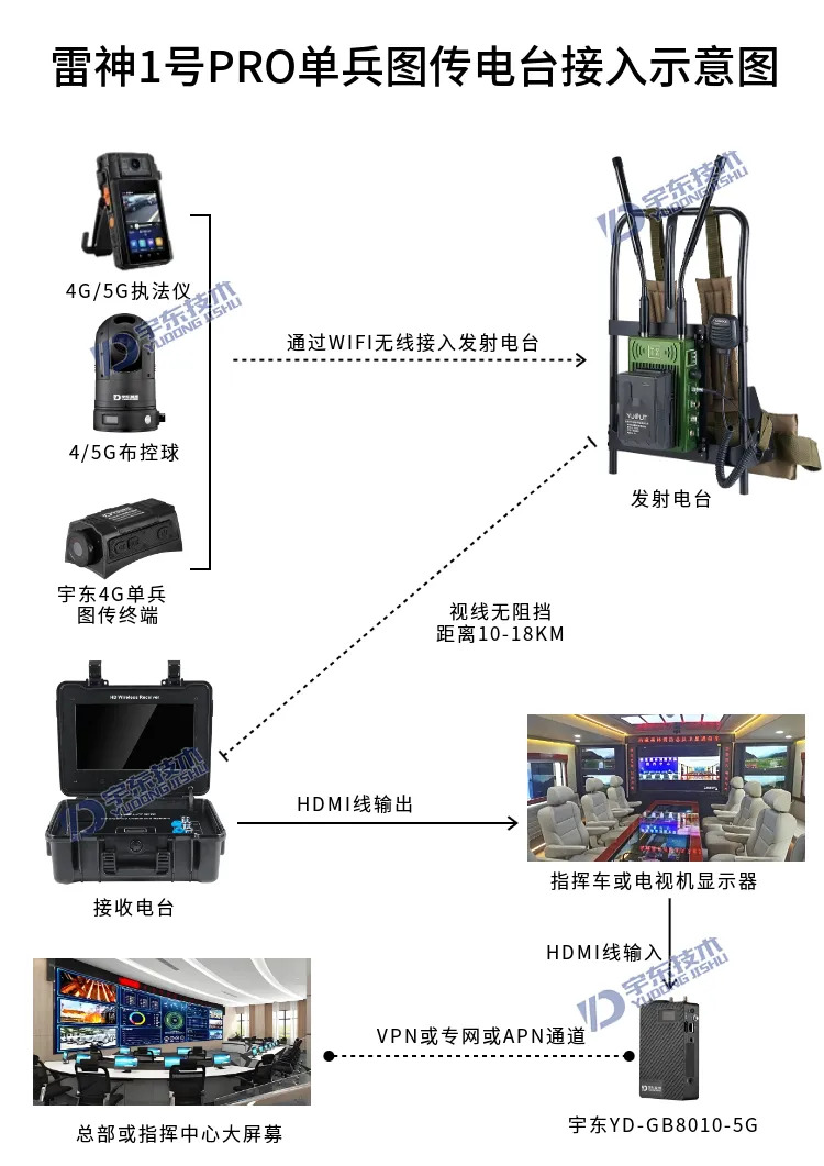 宇東技術(shù)雷神1號(hào)PRO背負(fù)式高清單兵無(wú)線圖傳電臺(tái),是公司針對(duì)應(yīng)急救援指揮、部隊(duì)拉練演習(xí)、公安、反恐作戰(zhàn)、消防救援、邊防執(zhí)勤、海警海關(guān)巡檢、森林消防等,在突發(fā)重大事件,斷網(wǎng)斷電,通信中斷的情況下,現(xiàn)場(chǎng)工作人員通過(guò)宇東雷神1號(hào)PRO單兵無(wú)線圖傳電臺(tái),可以和指揮部雙向語(yǔ)音通話對(duì)講,把現(xiàn)場(chǎng)采集的數(shù)據(jù)實(shí)時(shí)無(wú)線傳輸?shù)街笓]車(chē)/臨時(shí)指揮部大屏幕,讓指揮部領(lǐng)導(dǎo)對(duì)現(xiàn)場(chǎng)情況一目了然,節(jié)省了到達(dá)現(xiàn)場(chǎng)的時(shí)間,可快速做緊急指揮調(diào)度,最大限度的減少突發(fā)事件帶來(lái)的各種損失。